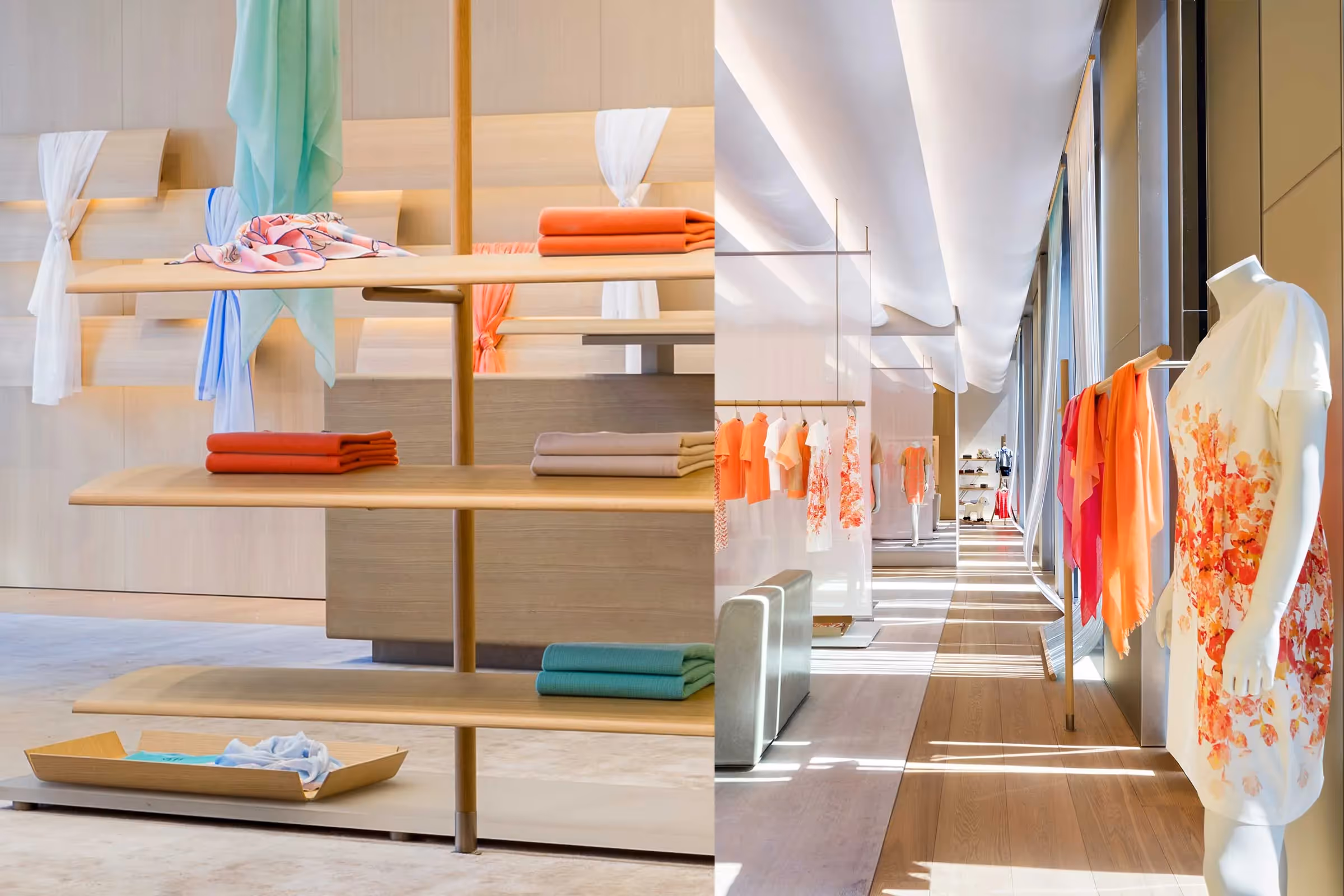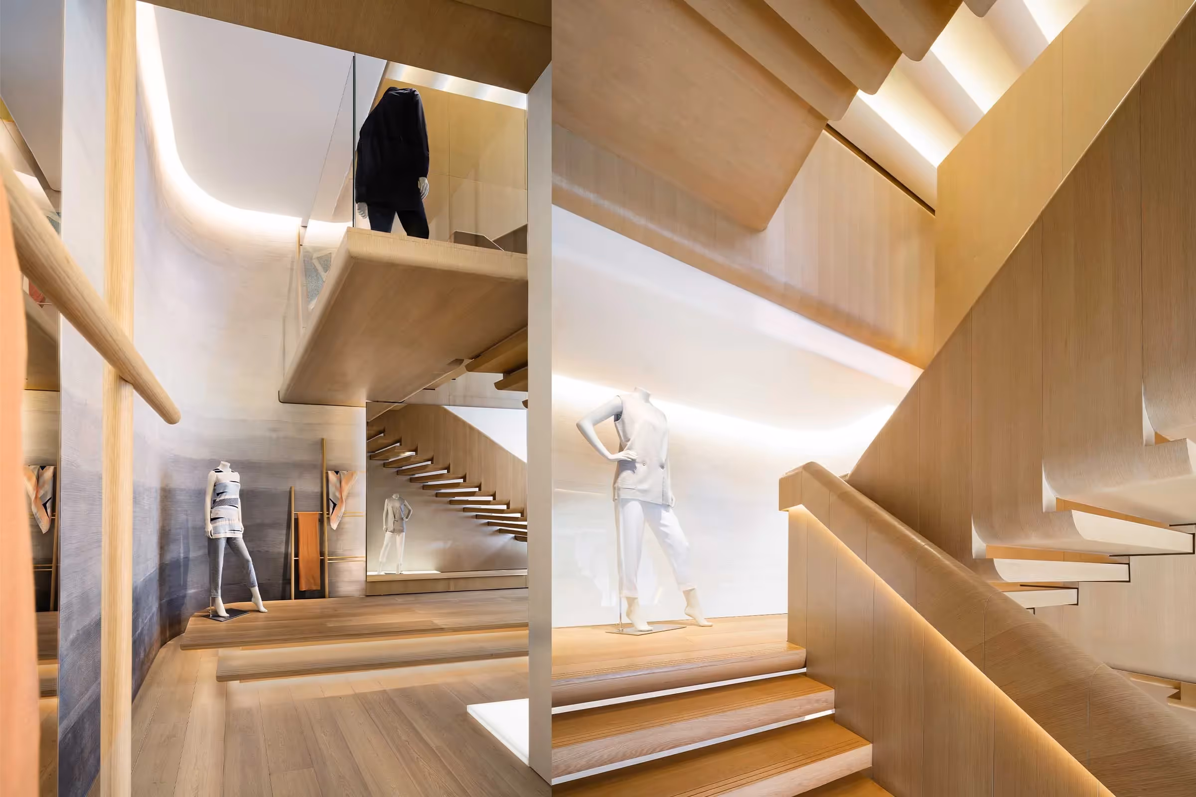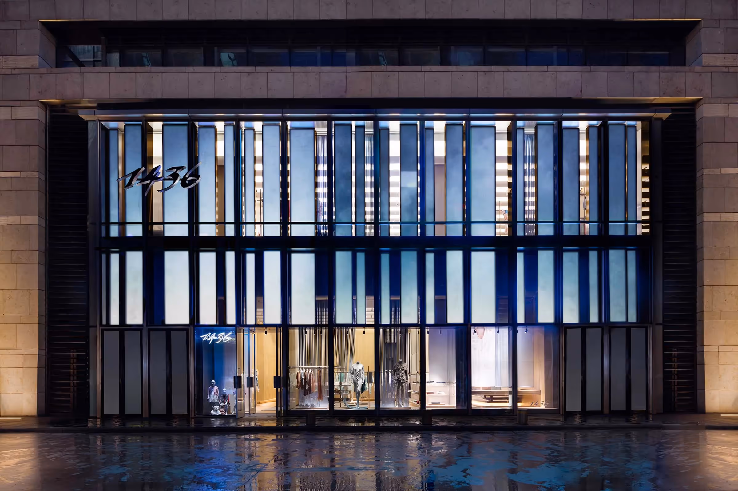 The 4,300-square-foot, two-level 1436 Flagship Store located in the Kerry Center in Beijing, China, reflects the brand’s elevated vision and captivates the new public image of 1436. The spatial concept has been conceived as an intricate portrait of the world of 1436, combining the intrinsic values of the brand concept of modernity, warmth and relaxed elegance. The space manifests itself as a harmonious frame to focus and highlight the character of the company and the personality of the collection.