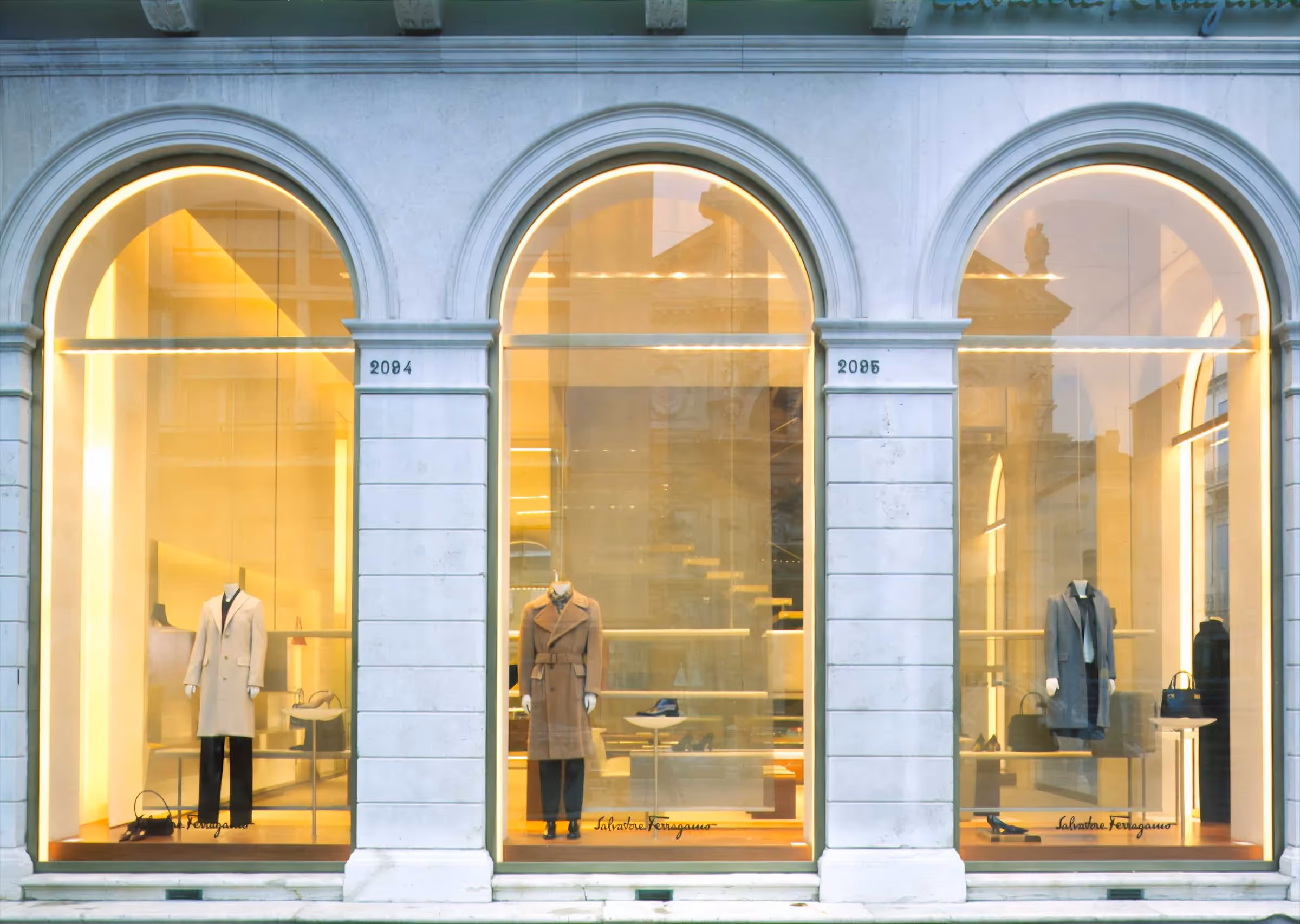 The Venice Flagship, located on two levels in a palazzo on the corner of Calle Large XXII and Campiello Barozzi, introduced the new Salvatore Ferragamo worldwide design concept. Surrounded by the magical and iconic city of Venice, the large arched window openings frame views into the boutique’s interior, whose understated furnishings blend with the rich historic context. Conceived as a grand salon, the environment evokes both an openness and intimacy that reinforces the Ferragamo brand characteristics of traditional quality and craftsmanship paired with an energetic and modern spirit.