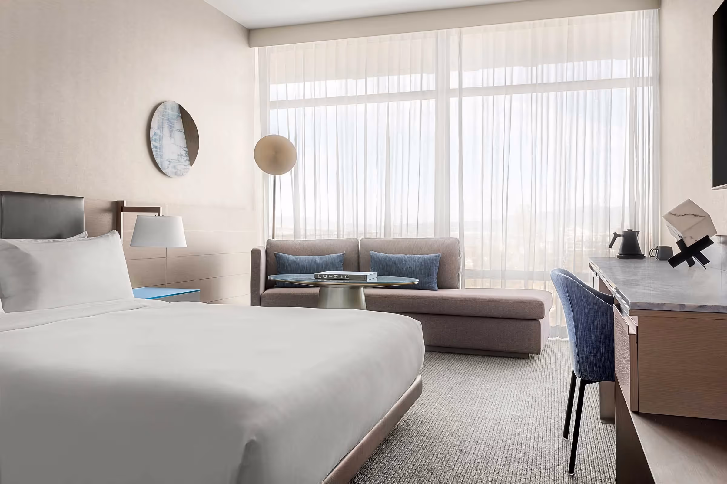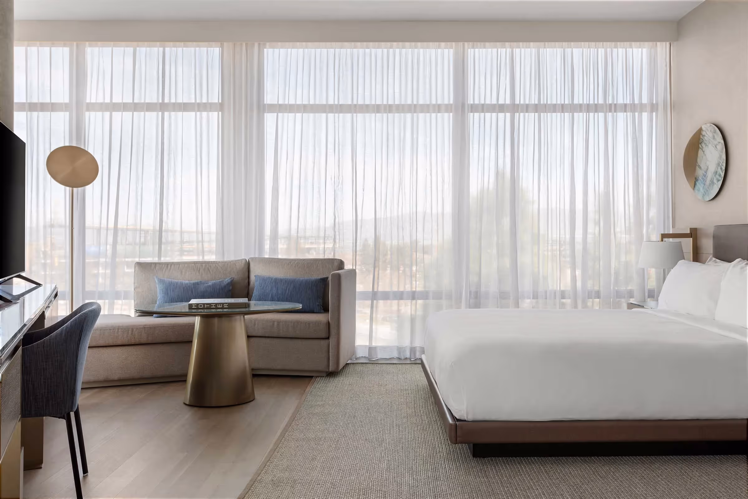 Gabellini Sheppard was commissioned by T2 Hospitality to design the interiors for the TETRA Hotel, an Autograph Collection hotel in the heart of Silicon Valley. Aiming to be a premier destination for innovators and creatives, the interior design celebrates classic European modernism, incorporating natural materials and a subdued color palette with contemporary touches suitable for this technological hub. Notable features in the guest rooms include deconstructed baths, freestanding vanities, floating desks, luggage benches, and upholstered headboard walls. The development offers diverse amenity and social spaces, employing a refined materials palette to ensure comfort that blends contemporary elements with accessible luxury. The project is environmentally conscious, incorporating initiatives to promote public transportation, energy-efficient HVAC systems, ample natural lighting, water conservation, landscape preservation, and strategies to enhance natural flora. The TETRA Hotel won a Structures Award for best hospitality project.
